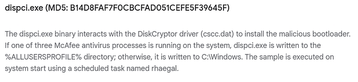 The Google report once again helped me out, mentioning that the DiskCryptor driver was used by the malware.