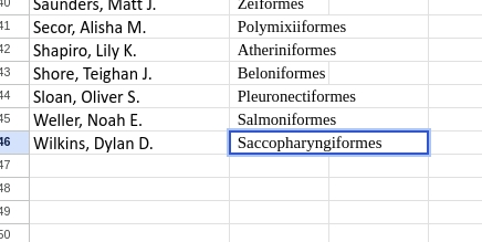 In 2019 UVM’s Ichthyology Class Had to Name their fish for class. Can you find out what the last person on the public roster named their fish?