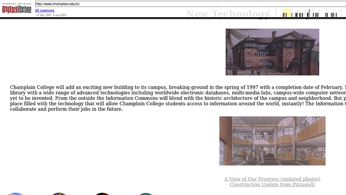 In 1998 specifically on February 12th, Champlain was planning on adding an exciting new building to its campus. Back then, it was called “The Information Commons”. Can you find a picture of what the inside would look like? Submit the SHA256 hash.