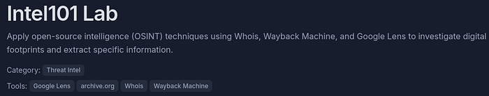 This exercise focuses on Open-Source Intelligence (OSINT) as a method for mining and analyzing publicly available data. It aims to enhance skills in producing valuable insights when investigating external threats in the role of a security blue team analyst. Through practical application, participants will learn to effectively gather and interpret information to improve overall security measures.
